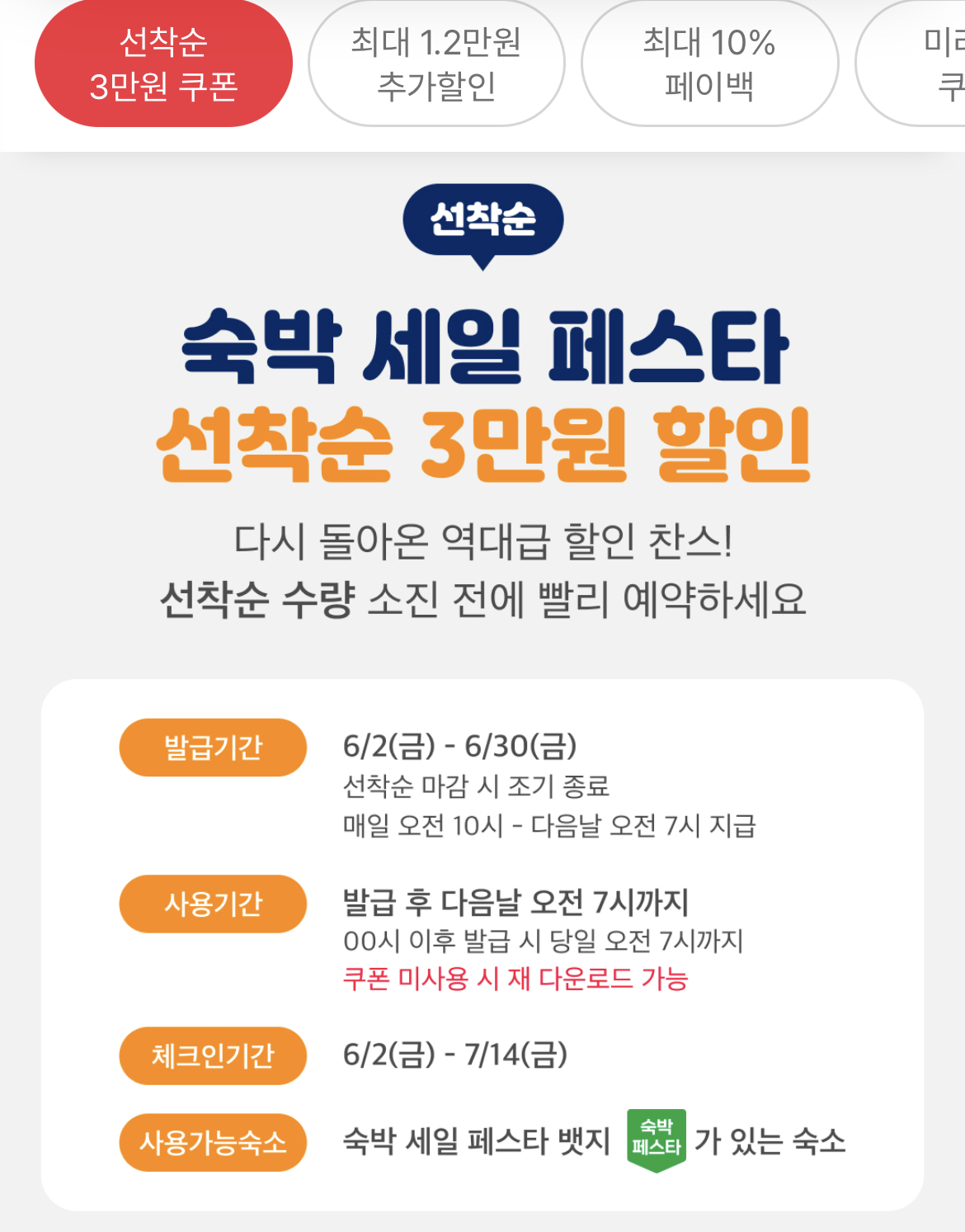 이상 여기어때 X 숙박 세일 페스타로 받을 수 있는 혜택 정보 정리해보았습니다.