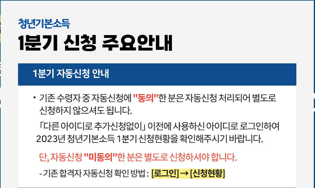 기존 수령자 중에 자동신청에 동의한 분들은 자동신청 처리되어 별도로 신청할 필요없으며 기존의 아이디로 로그인하면 신청현황을 확인할 수 있습니다. 다만 자동 신청에 미동의한 분들은 별도로 신청해야합니다.