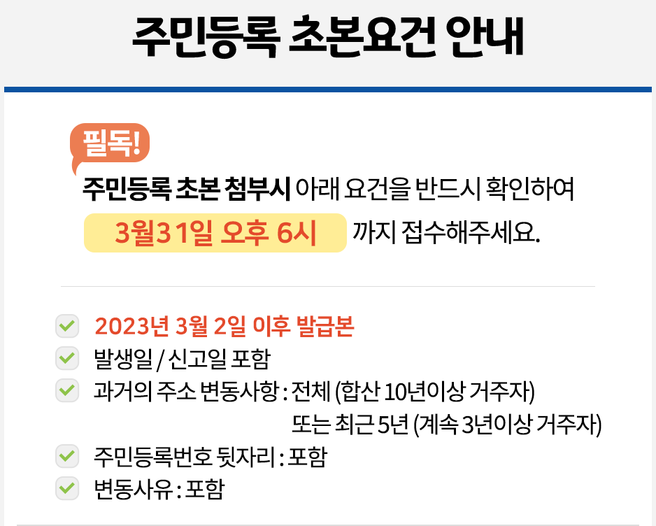 2. 주민등록 초본(2023년 3월 2일 이후 발급본)