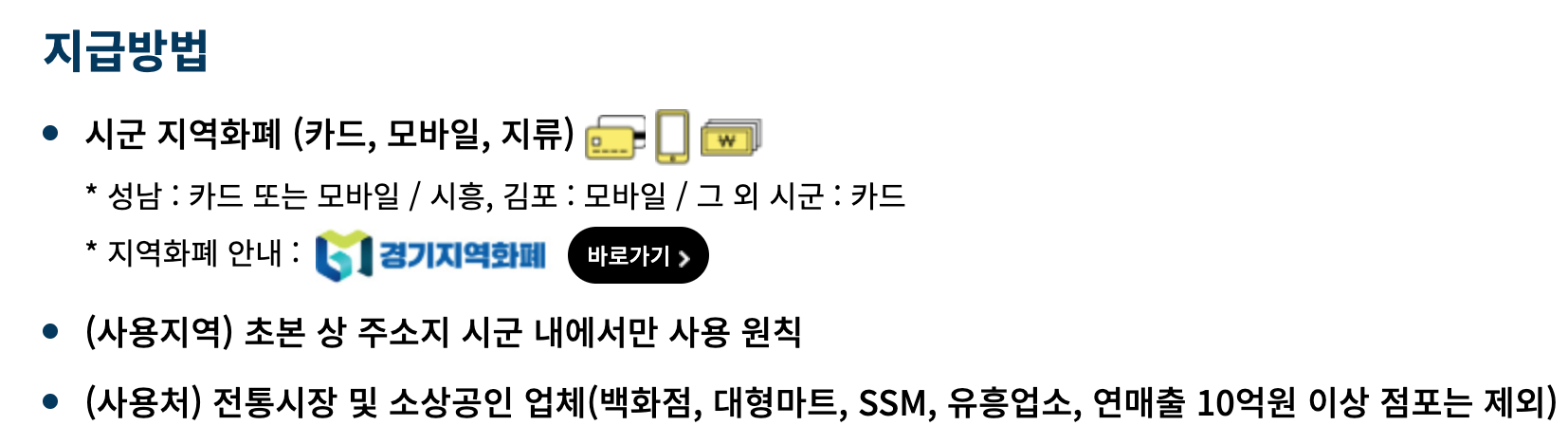 경기 지역 화페에 대해 더 자세히 알고 싶은 것이 있으면 아래 그림을 클릭하시면 해당 홈페이지로 가실 수 있습니다.