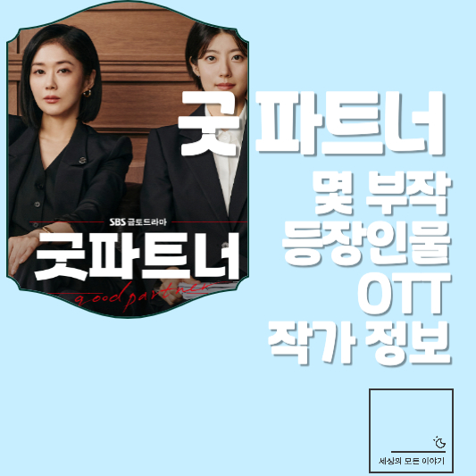 이상 SBS 금토 드라마 '굿 파트너' 몇 부작인지 주요 등장인물 및 다시 보기 가능한 OTT 그리고 작가 정보까지 정리해 드렸습니다. 감사합니다.