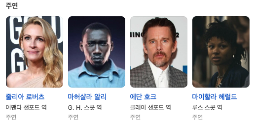 출연 : 줄리아 로버츠, 에단 호크, 마허샬라 알리, 마이할라 헤럴드 케빈 베이컨