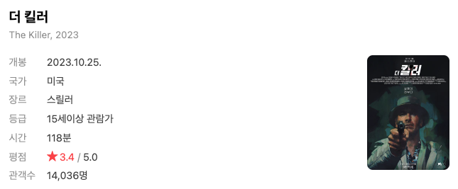 넷플릭스 영화 '더 킬러'의 간단 정보는 이렇습니다.
