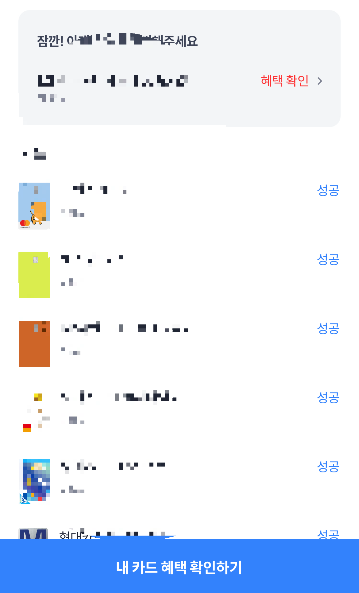 선택 후 잠시 기다리면 사용 중인 카드와 연결되고, 카드별 혜택을 확인할 수 있습니다.