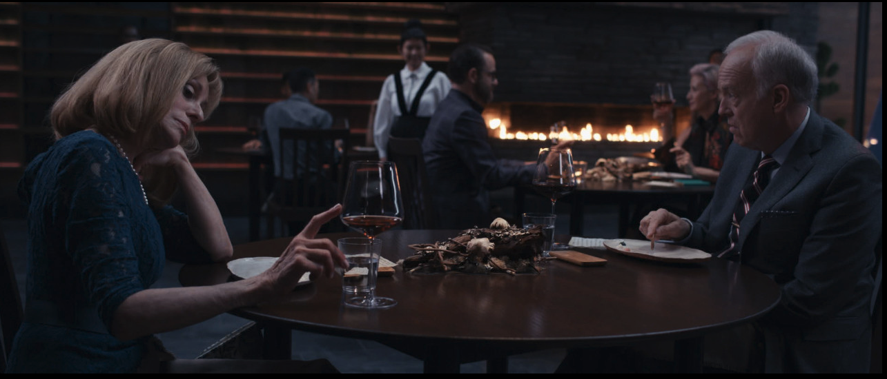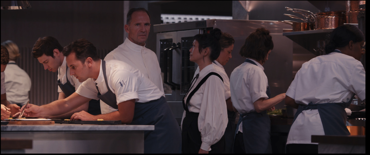 드디어 시작된 '저녁 시간' 매 코스별로 정성 가득한 음식이 나오고 셰프 슬로윅은 각 코스의 의미를 손님들에게 설명합니다. 셰프의 박수 소리에 일사분란하게 움직이는 많은 셰프들. 손님들의 각자 음식과 레스토랑 분위기에 대해 평하기 바쁩니다. 특히 맛칼럼니스트가 있는 테이블은 온갖 현학적이고 화려한 수식어로 음식을 평합니다. 타일러 역시, 들어간 양념들을 추측하며 이 순간을 즐기기 바쁘나 '마고'는 이 상황과 음식에 대한 불만이 점점 쌓여 갑니다.
