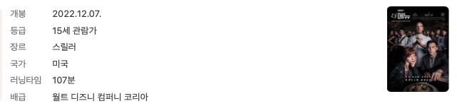 더 메뉴 주요 배역 캐스팅 네이버 영화 정보 캡쳐