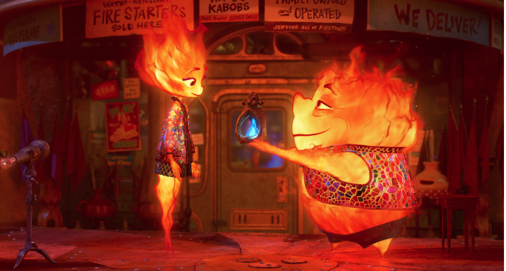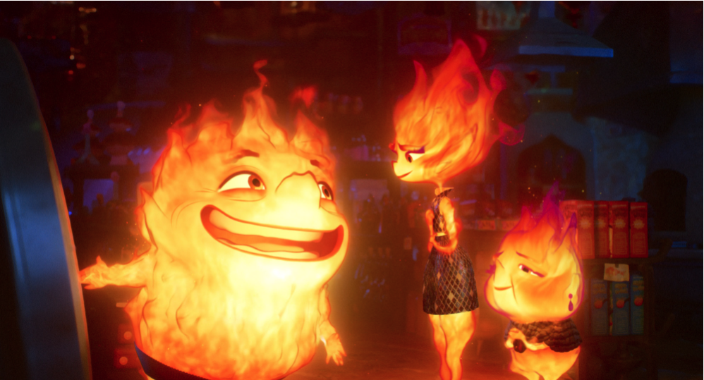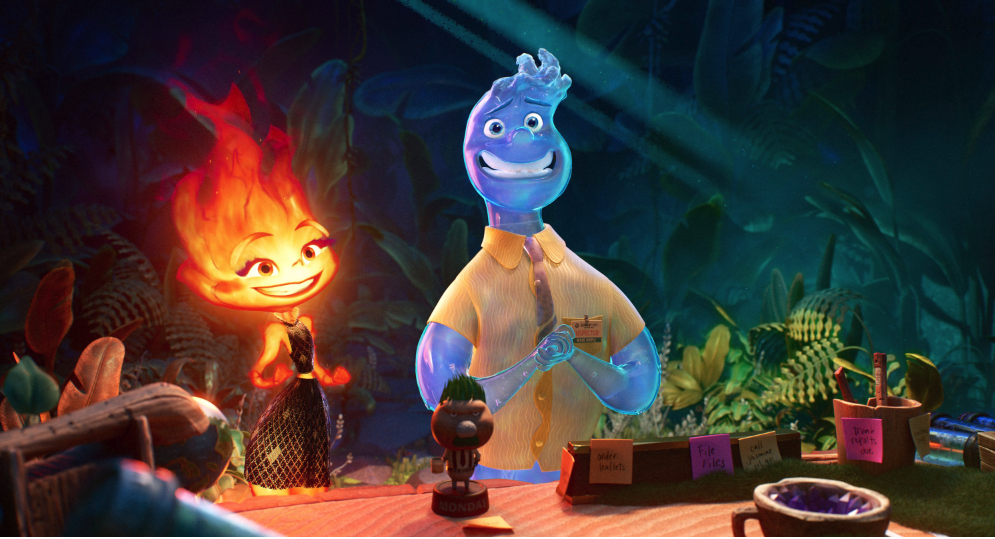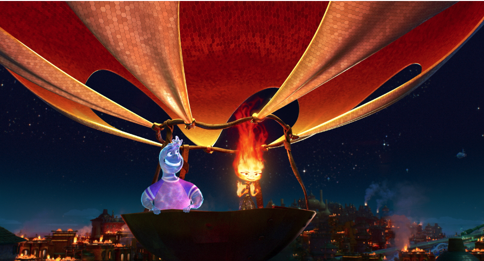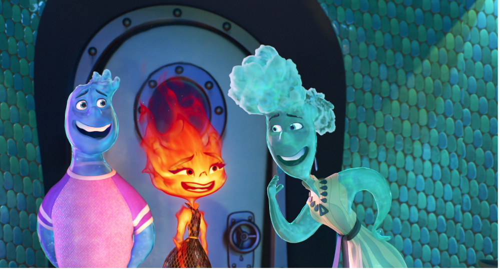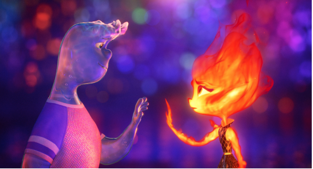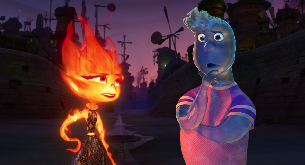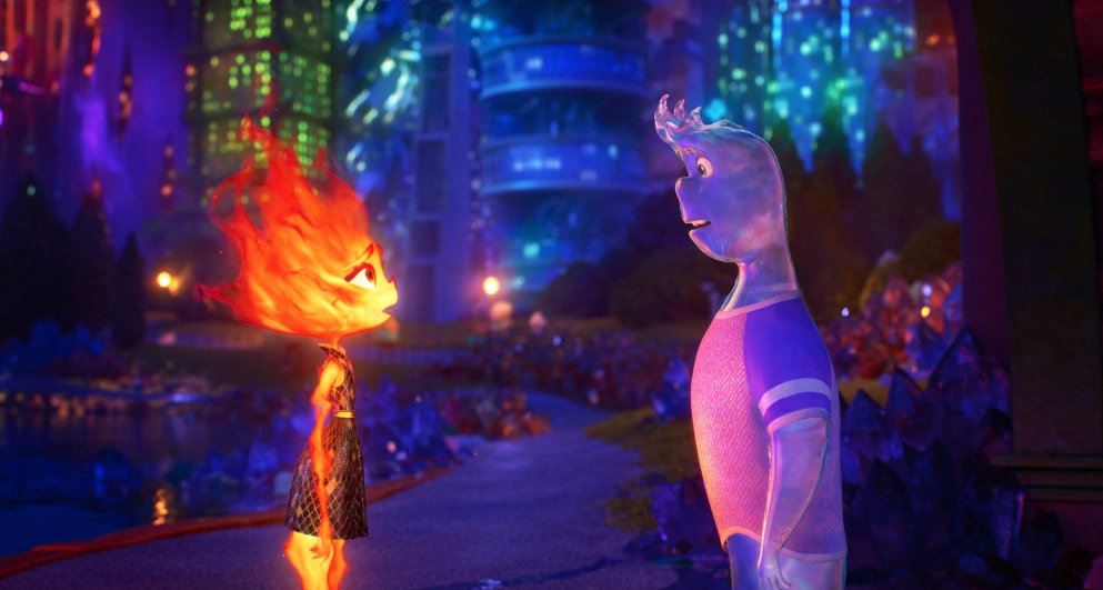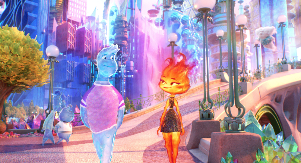 또 엘리멘탈이 볼 만한 부분은 정성스런 캐릭터들의 질감입니다 불과 물의 질감, 환상적인 엘리멘트 씨티의 모습들 모두 잘 표현해냈습니다. 이질감이나 거부감이 거의 없이 영화에 빠져들 수 있도록 말입니다. 이 영화에서 여러 빛깔로 타오르는 불과, 뚝뚝 떨어지거나 흐르는 물의 모습은 그 자체로도 매력적입니다.