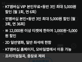 모든 멤버십 회원은 본인+동반 3인 최대 5000원 할인(월 3회 연 36회)혜택