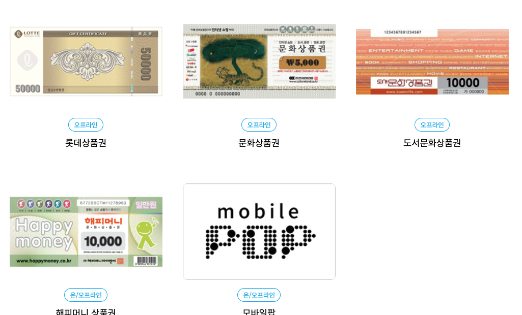 해피머니 상품권이나 모바일팝의 경우는 온라인, 오프라인 모두 사용 가능하십니다.