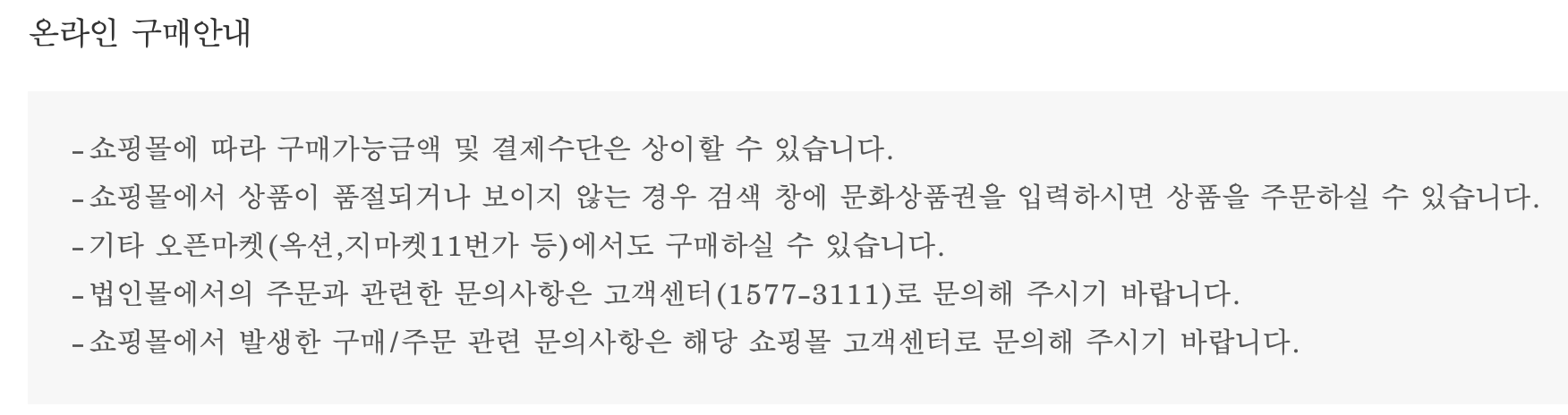 각각 온라인 구매처에 대한 자세한 설명은 (주) 문화상품권 홈페이지에서 확인할 수 있습니다.