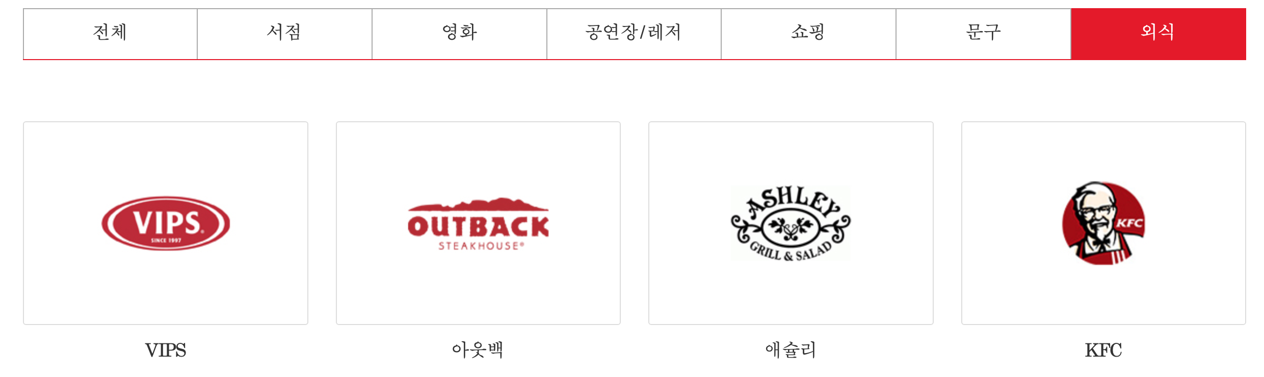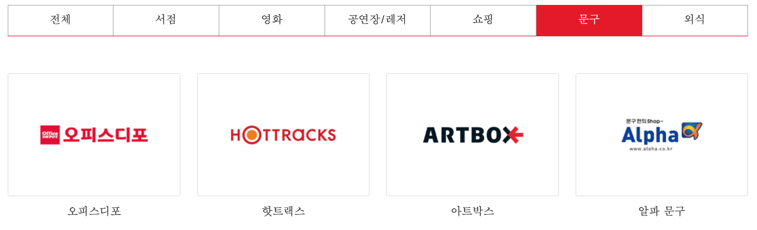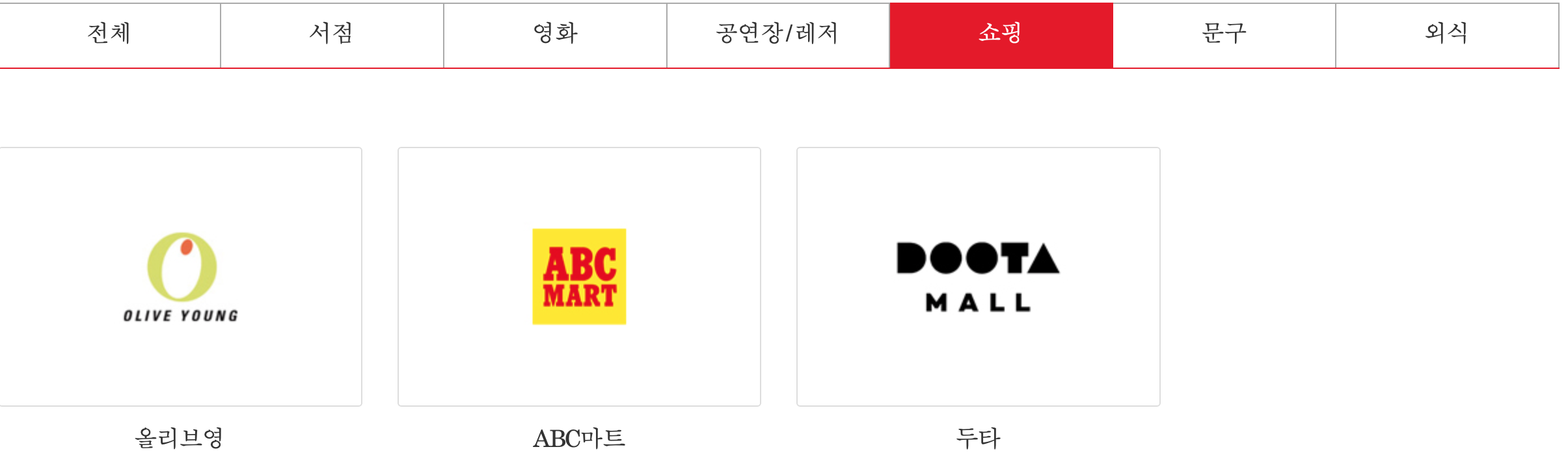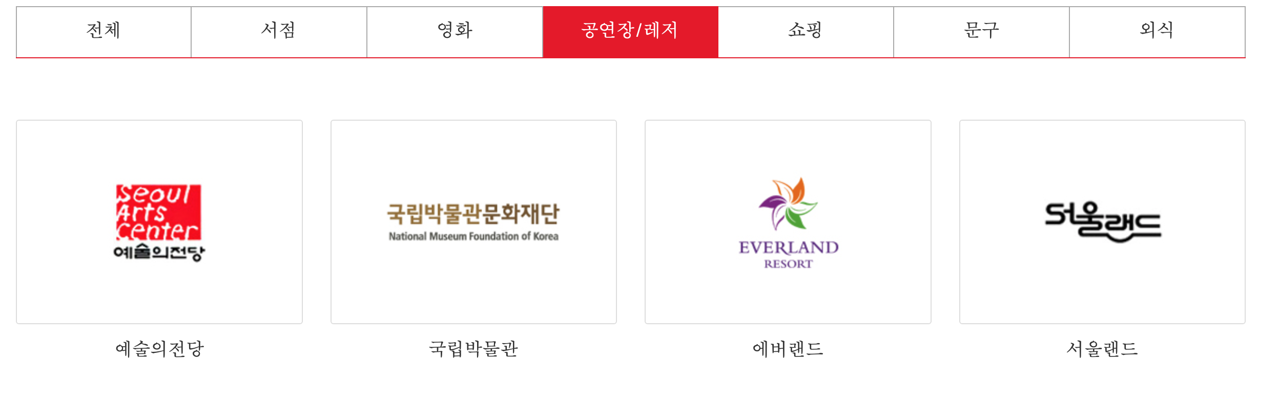 그 밖에 공연 전시 놀이공원 및 문구 신발 의류 쇼핑에서도 사용할 수 있는 곳이 있습니다.