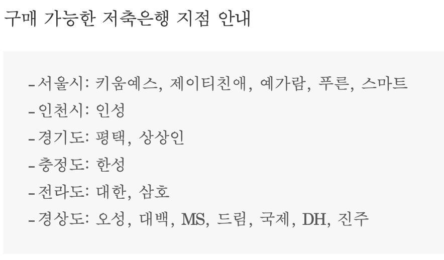 저축은행은 위에 언급한 지점에서만 구매가 가능합니다.