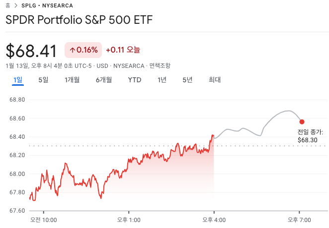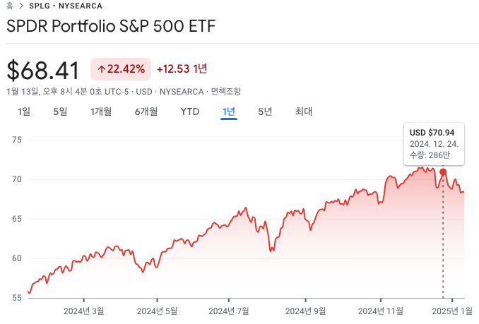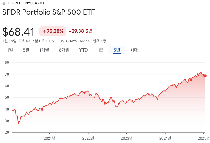 마지막으로 소개해 드릴 ETF는 SPLG입니다. SPY를 운용하는 스테이트 스트리트에서 운용하고 있습니다.