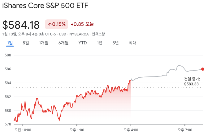 다음으로는 IVV가 있습니다. 블랙록에서 운영하는 ETF로 현재 1주당 584.18$에 거래되고 있습니다.