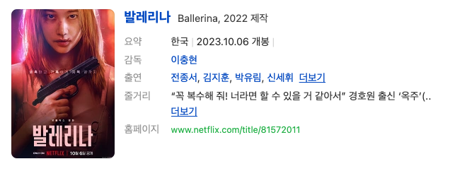 10월 6일 넷플릭스에서 공개된 영화 '발레리나' 아시나요? 영화계의 대표적인 감독 배우 커플이기도 한 '이충현' 감독이 연출하고 '전종서' 배우가 주연을 맡은 액션 영화입니다. 이번 포스팅에서는 넷플릭스 영화 '발레리나' 볼까 말까 망설이는 분들을 위해 볼 만한 점과 아쉬운 점을 정리해 보겠습니다.