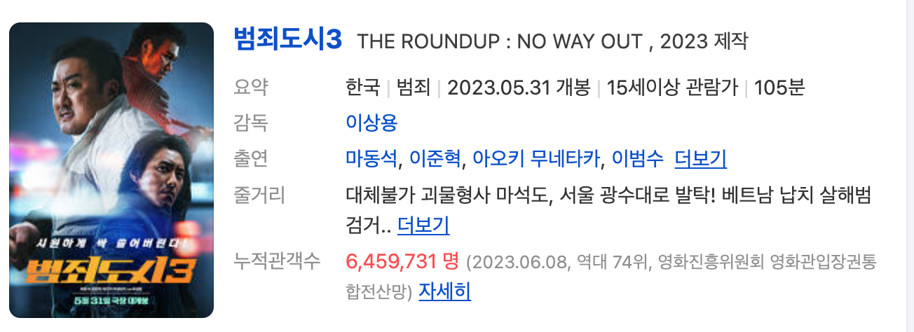 범죄도시3는 그런 아는 맛의 무서움(?)과 재미가 있는 영화입니다.