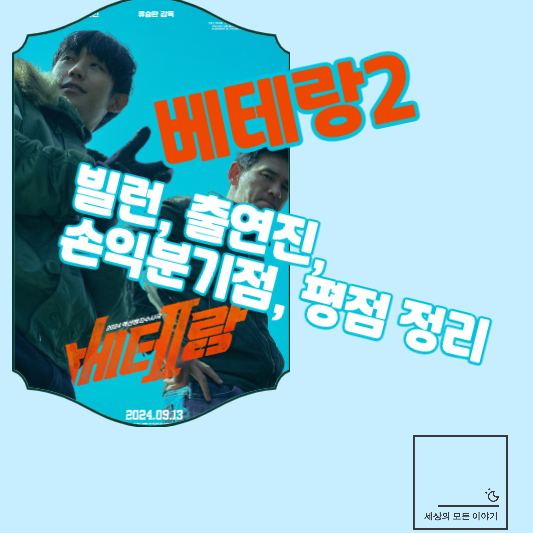 천만 관객 영화 '베테랑'이 9년 만에 속편으로 돌아왔습니다. 베테랑에서는 갑질 재벌 2세와 광수대 열혈 형사 서도철(황정민)의 한판 대결이 흥미진진했는데요 9년 만에 돌아온 베테랑2의 빌런, 출연진, 손익분기점, 평점 정보 정리해드리겠습니다. 또 쿠키영상 유무도 알려 드립니다. ^^