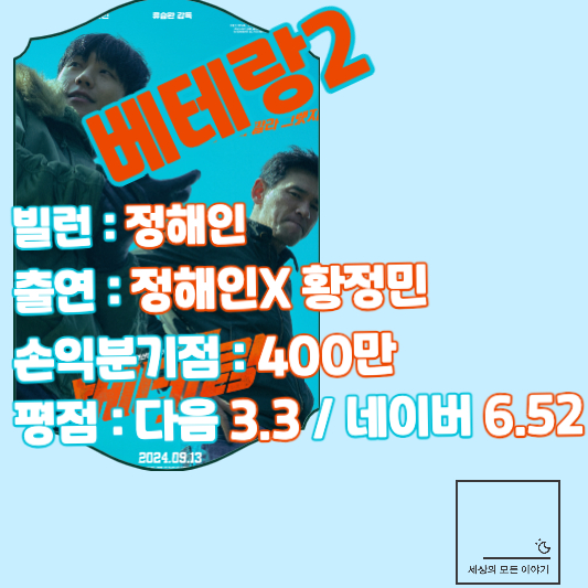 이상 영화 베테랑2 빌런, 출연진, 손익분기점, 평점 정보 정리에 쿠키 영상 유무까지 알려 드렸습니다. 감사합니다.