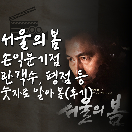 이상 영화 '서울의 봄' 후기, 손익분기점, 관객수, 평점 등 영화 '서울의 봄'과 관련된 흥미로운 숫자들을 알아 보았습니다.