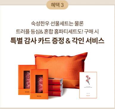 그밖에 설로인 홈페이지에 직접 방문하시면 가정의 달 혹은 선물제안, 실시간 세일 등의 섹션이 있습니다. 그 섹션에서 구성과 가격을 보시고 구매 여부를 결정하시고 숨은 혜택도 받으실 수 있습니다.