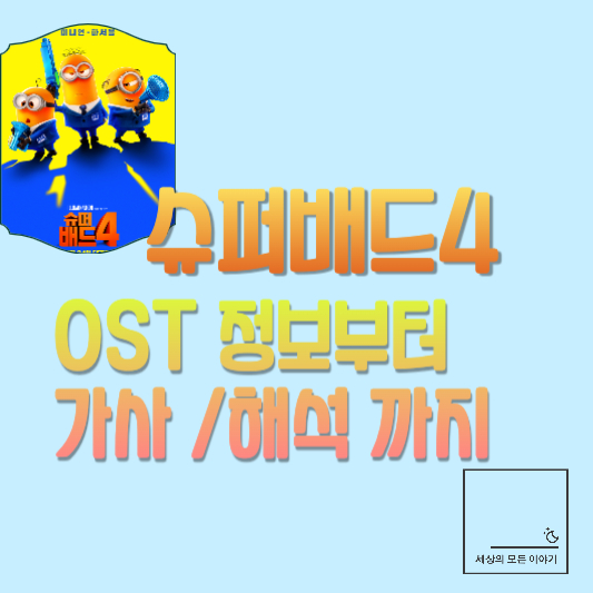 이상 슈퍼 배드4의 OST 정보부터 가사, 해석까지 알려 드렸습니다 . 영화 감상 후에 OST 다시 들으면서 영화 속 장면을 곱씹어 보는 재미 놓치지 마시기 바랍니다. 감사합니다.