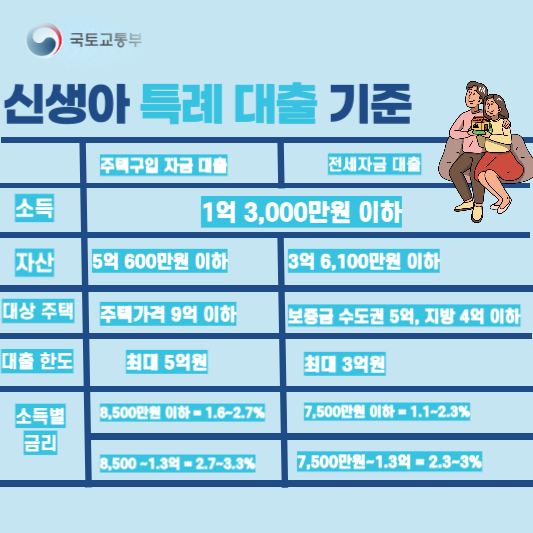 2023년에 출산하셨거나 출산 예정이신가요? 이런 분들이 주택을 구입하거나 전세 계약을 하실 때 정부가 파격적인 조건으로 대출 지원해주는 제도가 발표되었습니다. 바로 신생아 특례 대출인데요 2024년부터 시행될 예정인 신생아 특례 대출 조건 한도 금리 정리해 드리겠습니다. 조건에 해당하신다면 혜택 꼭 잡으시기 바랍니다.