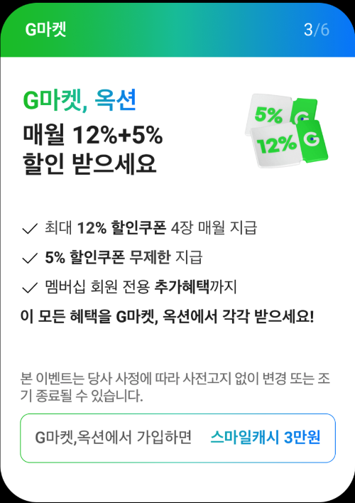 최대 12% 할인 쿠폰 4장을 매월 받아 사용하실 수 있으며