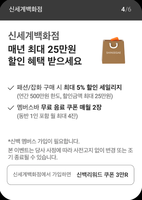 백화점은 일년 최대 25만원을(패션, 잡화 구매시) 할인 받을 수 있고