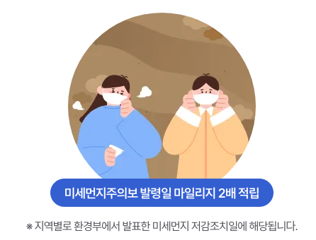 환경 관련 기념일에도 마일리지 2배 적립 혜택이 있는데 별도 공지가 있는 경우에 해당하며 미세먼지 발령일과 중복 적립되지는 않습니다.