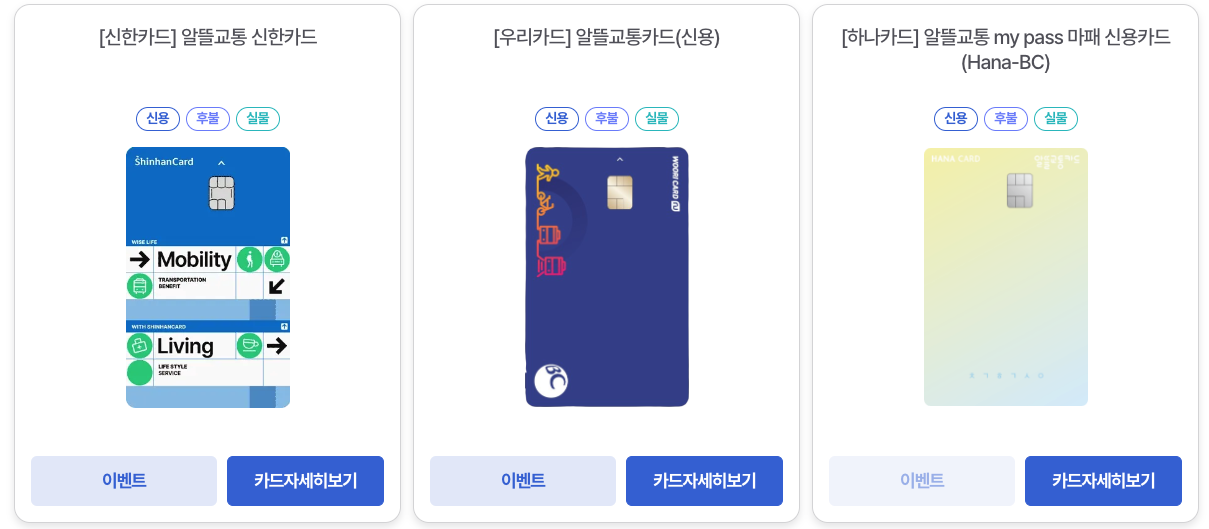 | 알뜰교통카드 카드사별 혜택 비교하고 신청하세요(신용카드) (0) | 2023.07.11 |