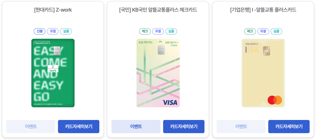 신용 카드부터 체크카드까지 교통비 적립 외에 카드사별로 편의점 할인, 커피전문점 할인 등 다양한 혜택이 있으니 잘 알아보시고 본인의 생활 패턴에 맞는 카드 선택하셔야겠습니다.