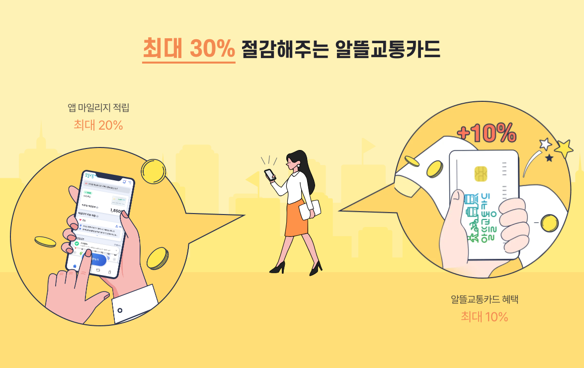 알뜰교통카드는 대중 교통 이용 실적에 따라 최대 20% 마일리지 적립 효과에 카드사 별로 추가 혜택 최대 10%까지 최대 30%까지 혜택 받으실 수 있습니다.