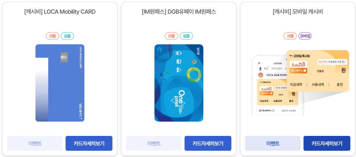 신용 카드부터 체크카드까지 교통비 적립 외에 카드사별로 편의점 할인, 커피전문점 할인 등 다양한 혜택이 있으니 잘 알아보시고 본인의 생활 패턴에 맞는 카드 선택하셔야겠습니다.