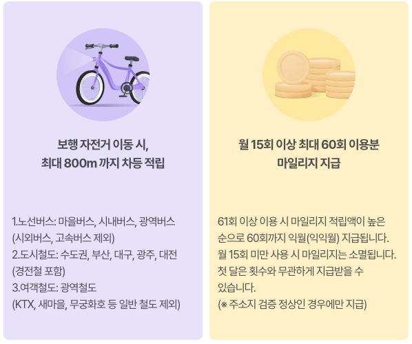 알뜰교통카드 월 마일리지 적립 기준 및 마일리지(금액)