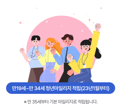 또 만19세 ~ 만 34세 청년은 청년층 마일리지 적립혜택 받을 수 있습니다.
