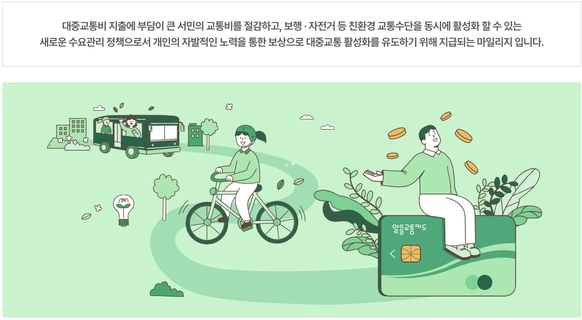 교통비는 아끼고 지구 환경도 보호하고 대중 교통 이용으로 칼로리도 덜어내는 1석 3조의 효과를 누릴 수 있는 제도입니다.