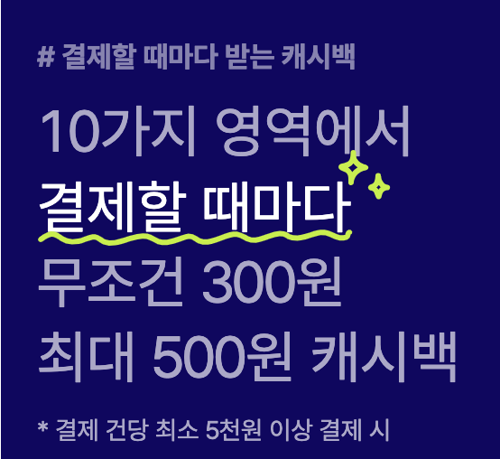 전월 실적과 무관하게는 300원씩 캐시백되고 전월 실적이 30만원 이상이면 500원 캐시백된다고 합니다.