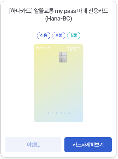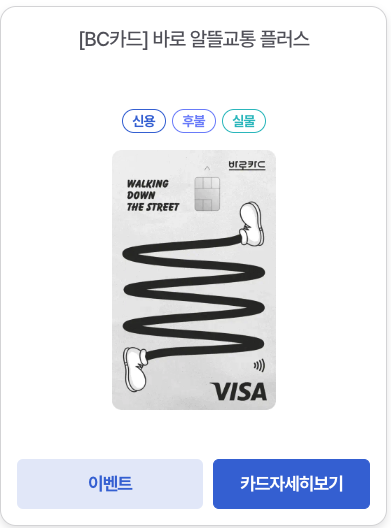 알뜰교통카드로 사용가능한 신용카드 중 이벤트도 함께 진행 중인 카드는 다음과 같습니다.