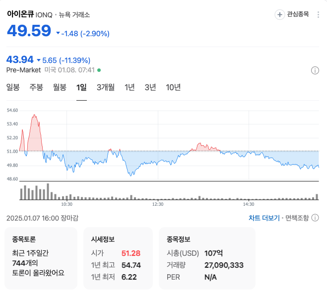 양자 컴퓨터 관련 미국 주식 : 아이온큐(IONQ)