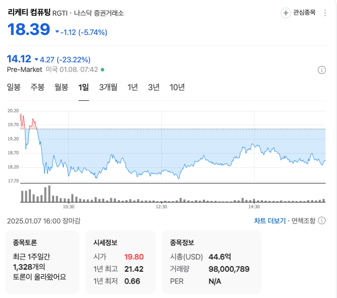 양자 컴퓨터 관련 미국 주식 : 리케티 컴퓨팅(Rigetti Computing :RGTI)