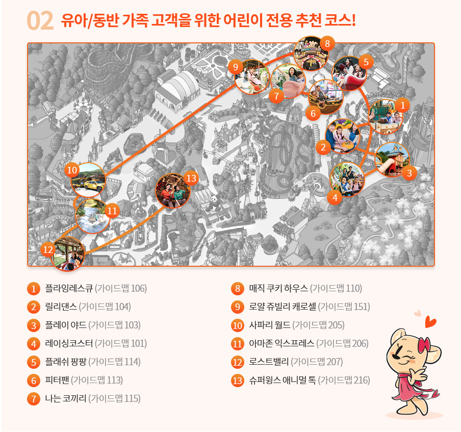 에버랜드 홈페이지에는 상황별, 성향별로 에버랜드를 만끽할 수 있는 추천 코스롤 소개하고 있습니다.