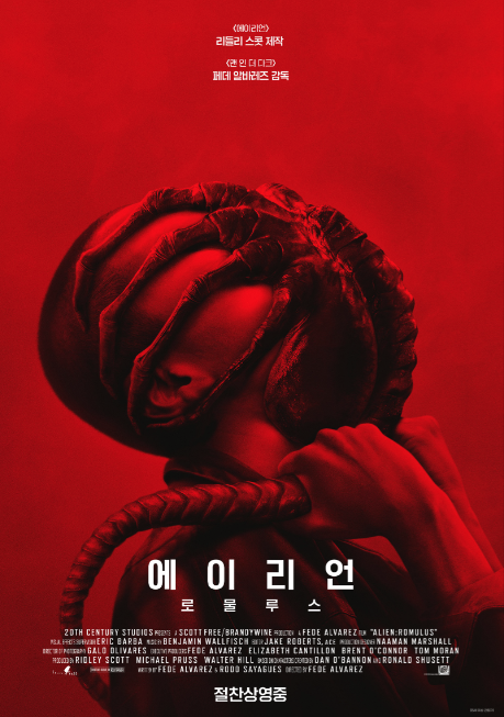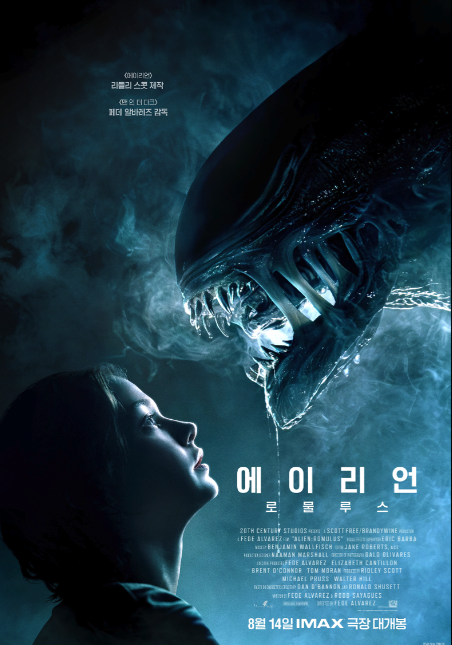 다음은 최근 개봉한 에이리언 로물루스입니다. 식민지에서 노예와 같은 삶을 살던 젊은 무리가 이상적인 우주 아비가로 떠나기 위해 필요한 동면을 위한 장치를 구하러 미지의 우주의 정거장 로물루스로 잠입하면서 펼쳐지는 이야기입니다. 에이리언의 등장과 습성 등은 시리즈와 맥을 같이 하나 등장인물은 전후 시리즈와 무관한 인물들이어서 스핀오프 같은 느낌도 있습니다.