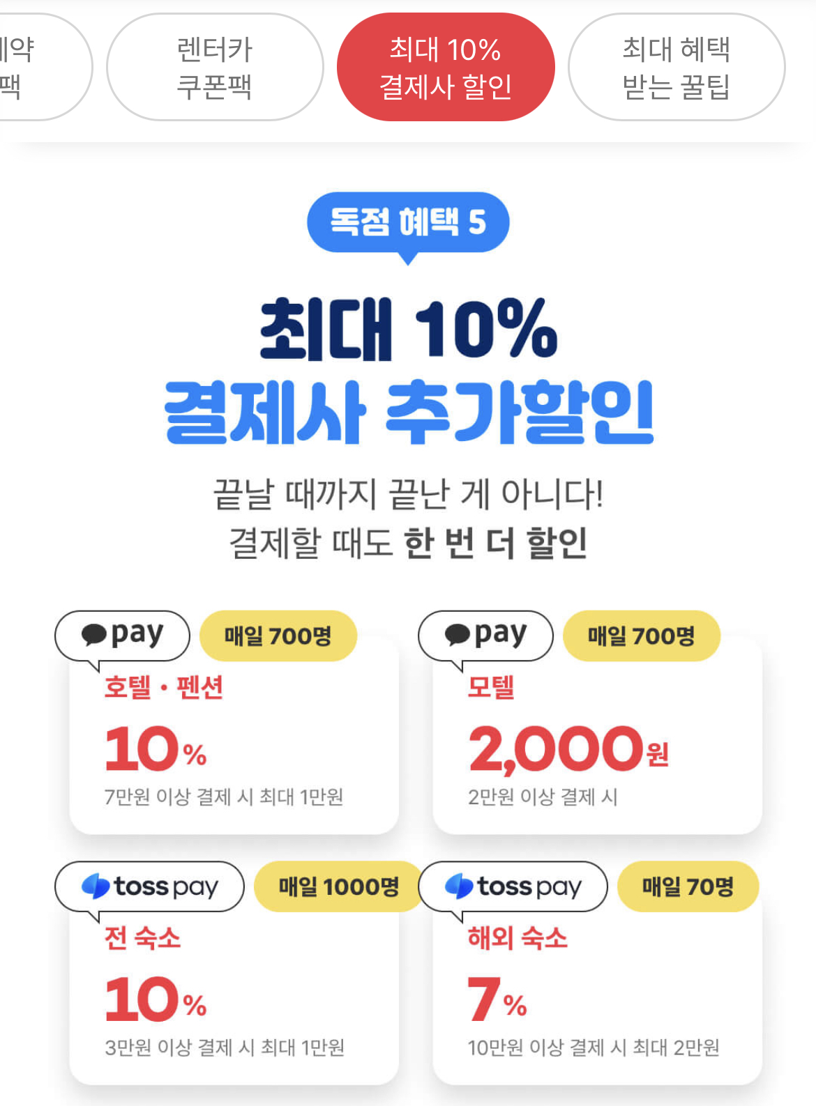 독점 혜택 다섯, 결제사 추가 10% 할인