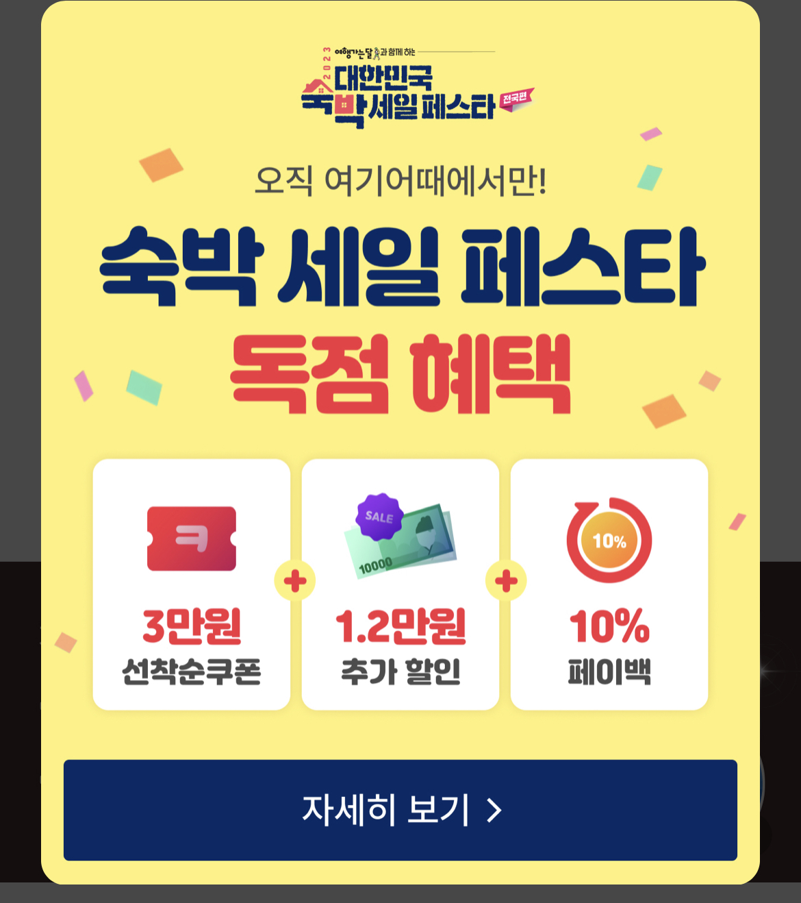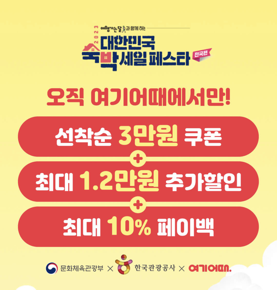 이상 여기어때 X 숙박 세일 페스타로 받을 수 있는 혜택 정보 정리해보았습니다.