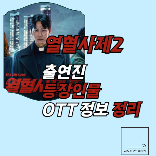 2019년을 강타했던 코믹 액션 드라마 열혈사제가 5년만에 시즌2로 돌아왔습니다. 이번 포스팅에서는 열혈사제2 출연진 등장인물 열혈사제2 볼 수 있는 OTT 정보까지 정리해 드리겠습니다.