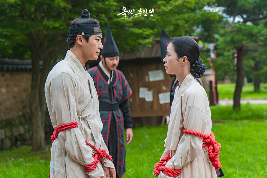 옥씨부인전은 모든 것이 거짓이었던 외지부 옥태영(임지연)과 천상의 전기수 천승휘(추영우)의 생존 사기극이었습니다. 노비 구덕은 우연한 기회에 양반집 규수 행세를 하게 되었고 명문가의 서자인 천승휘는 그런 구덕과 도망쳐 살고 싶었으나 구덕이 옥태영으로 살기를 다짐하면서 엇갈립니다.