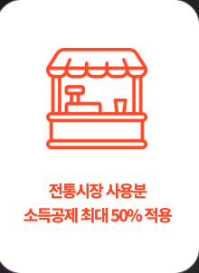 또 할인 혜택뿐만 아니라 사용 금액에 대한 소득공제 혜택도 함께 받을 수 있습니다. 전통시장에서 온누리상품권으로 사용한 금액에서 최대 50%까지 소득공제 적용되니 참고하시길 바랍니다.