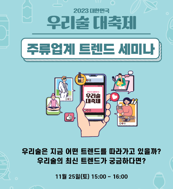또 전통주 관련 주류업에 종사하시거나 관심있으신 분들을 위한 주류업계 트렌드 세미나도 진행합니다.