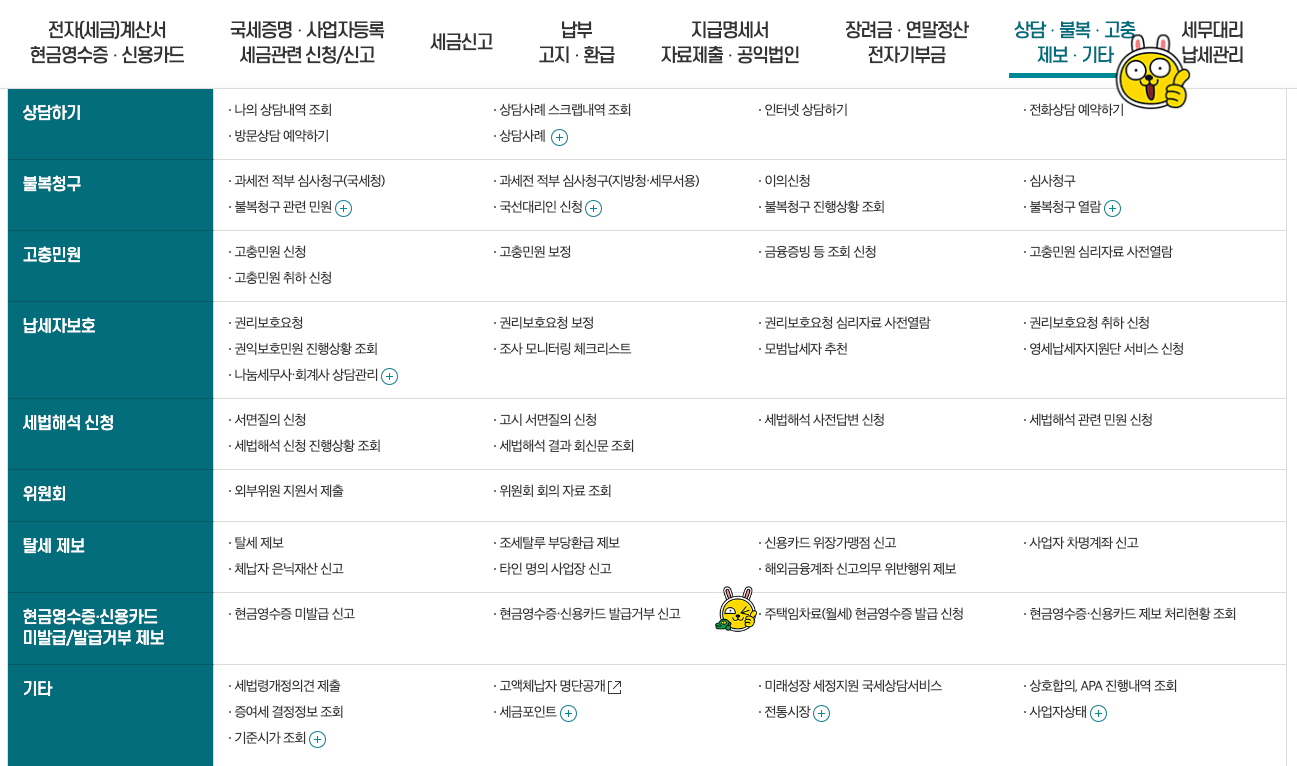 홈텍스 홈페이지에서 상담 불복 고충 제보 기타 메뉴에 커서를 대면 하위 메뉴를 확인할 수 있는데요 그 아래 주택임차료(월세) 현금 영수증 발급 신청 항목을 누르시면 로그인 후 신청 절차 밟으실 수 있습니다.