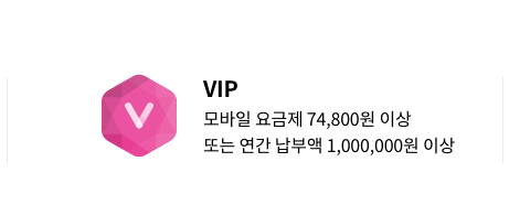 VIP는 모바일 요금제 74,800원 이상 또는 연간 납부액 1,000,000원 이상인 분들입니다.